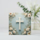 Cross and White Roses Catholic Christening Invitation