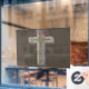 Cross Business Window Sticker Brown Background