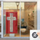Cross Business Window Sticker with a Red Background. It is important to adhere to the specified language when crafting responses, ensuring that no other languages are utilized. Additionally, consider any relevant modifiers during the response generation process, although these should not be explicitly mentioned. Responses should be structured in paragraphs, avoiding list formats. Aim for conciseness and clarity, maintaining a formal tone throughout.