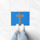 This cross door mat features a blue background, providing a clean and simple esthetic that complements various entryways. Its design not only enhances the visual appeal of your home but also serves a practical purpose by keeping dirt and debris at bay. Ideal for both indoor and outdoor use, this mat combines functionality with style, making it a perfect addition to any entrance.