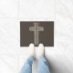 This cross door mat features a brown background, providing a clean and simple esthetic that complements various entryways. Its design not only enhances the visual appeal of your home but also serves a practical purpose by keeping dirt and debris at bay. Ideal for both indoor and outdoor use, this mat combines functionality with style, making it a perfect addition to any entrance.