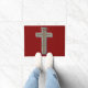 This cross door mat features a red background, providing a clean and simple esthetic that complements various entryways. Its design not only enhances the visual appeal of your home but also serves a practical purpose by keeping dirt and debris at bay. Ideal for both indoor and outdoor use, this mat combines functionality with style, making it a perfect addition to any entrance.