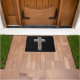 This cross door mat features a black background, providing a clean and simple esthetic that complements various entryways. Its design not only enhances the visual appeal of your home but also serves a practical purpose by keeping dirt and debris at bay. Ideal for both indoor and outdoor use, this mat combines functionality with style, making it a perfect addition to any entrance.