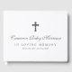 Memorial service guest book in white with grey text and a cross. Add your loved one's name in a gorgeous script.