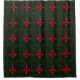 Featuring a unique, repeating cross-flower or four-leaf ornament pattern set against a deep, textural green grass background.