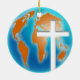 Illustration of a colourful globe of the whole world with a cross symbol cut out of it. Christian concept design. Easily customise and choose your own background colour. Image available on various gifts and products.