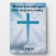 Beautiful cross in sky is featured on this religious tabletop plaque. With quote from St. Padre Pio, "May Jesus be your guide, support and life, always and in everything". A wonderful gift to give someone that needs encouragement or a reminder that Jesus is there for them or use yourself. Comes with an attached easel stand and has an easy wipe clean surface.