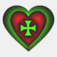 This Gothic Heart design/graffix features a cute but spooky green glowing crossl centred in a ruby red heart in the centre of a full black heart shaped sticker design. the overall effect is a rich vibrant colour contrast to the dark outer edges. Makes a great halloween party treat or halloween decoration.