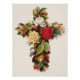 ..., roses, floral, flowers, cross, jesus christ, christian, crucifix, religion, chromolithograph print, lithograph, religious, God, christianity, red, white, gold, green leaves, petals, stately, elegant, sophisticated, chic, formal