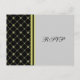 RSVP response postcards with an elegant cross background pattern in gold on black and grey. Click Customise It to change background colours, fonts, add text and more, even save your design for later.