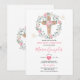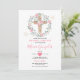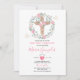 Cross Pink Flowers Girl First Holy Communione Invitation
