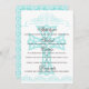 Cross themed wedding menu cards feature a cross design with calligraphy borders and multiple text fields that you can customise with your personal details on the front while the back has a damask pattern in blue and brown.