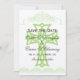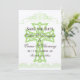 Cross themed wedding save the date cards feature a cross design with calligraphy borders and multiple text fields that you can customise with your personal details on the front while the back has a damask pattern in green and brown.