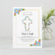 Celebrate your children's religious sacrament with this religious invitation featuring blue, red and yellow flowers and a centre cross. (<a href="https://www.freepik.com/free-photos-vectors/background">Background vector created by freepik - www.freepik.com</a>). The card is easy to customise with your wording, font, font colour and choice of six paper types.<br/><br/>Not exactly what you're looking for? All our products can be custom designed to meet your needs at no extra charge.<br/><br/>Simply contact us at askcottonlamb@gmail.com<br/><br/>Coordinating products available: