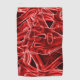 Crossed and overlapping red acrylic ribbon cutouts golf towel