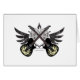 Crossed Guitars and Skulls on t-shirts and gifts for guitar players and music lovers. Bass guitars with skulls and heraldry background.