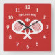 Crossed padel tennis rackets wall clock for club. Square sports clock with custon name and logo. Red design with racquets and ball. Nice Birthday gift idea for club club house, player, coach, mom, dad, club, kids etc. Add your own funny quote or name. Sports decor for home or club house.