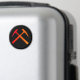 Crossed rock hammers emblem in red and orange on a black background.