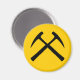 Crossed rock hammers in black on a yellow background. Background colour can be customised.