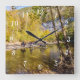 Wall clock featuring three cowboys on horses cross over Buffalo National River at Steel Creek Campground in Arkansas, United States. Check out the large natural limestone rock bluff behind them. Looking for more products? Visit my store: http://www.zazzle.com/timelessmomentsphtgy