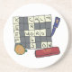 A crossword puzzle with the words "Keep Calm Cross Word On" filled in. A mug of coffee or tea, a pen and a glasses case lie on or next to it. A colourful fun image for crossword enthusiasts.