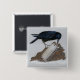 Colour pencil drawing of a curious crow investigating a shiny harmonica he has found.