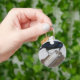 A colour pencil drawing of a curious crow investigating a shiny harmonica adorns this keychain!