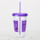 This acrylic drink tumbler with straw and lid has a single crow in black silhouette sitting in black barren tree branches against a haunting purple sky.