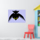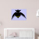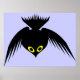 This cute design features a cartoon style image of a crow. The crow is black with yellow eyes and has its wings outstretched. The background is blue. This poster would look great in a nursery or on the wall of a kids bedroom. There are several different sizes of poster available, the largest of which is shown here.