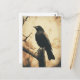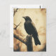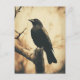 A vintage-style digital art piece of a crow, showcasing the bird perched on a tree with aged textures and classic, moody character.