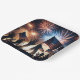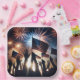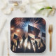 4th of July crowd of people silhouette holding American flags watching fireworks