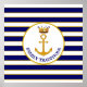Family nautical golden anchor and crown on blue and white striped Poster.