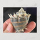 The unusual and easily identifiable crown conch seashell is featured on this postcard. Found in saltwater, the mollusk creates a home (the shell) that contains spirals full of spikes. Often the spikes are worn and not terribly big, but this crown conch has some pretty impressive spikes. The side view photo of the shell covers the front of the card, with another photo, top view, is the background on the reverse. Also, include a message in printed brown text if you choose.