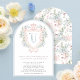 This charming baby shower invitation exudes regal elegance with a modern twist, featuring a beautifully illustrated crown crest monogram, which is both sophisticated and endearing. The soft watercolor florals in delicate shades of pink and blue evoke a sense of gentle warmth and joy, perfectly capturing the essence of a new beginning. The ornate crest, framing the baby’s initial, adds a touch of timeless grace, creating a memorable statement for your special event.