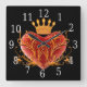 Crown Filigree Heart Square Clock