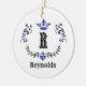 Crown Wreath Monogram 'R' Personalised Ceramic Tree Decoration