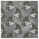 This Gothic-inspired design showcases black birds with silver crowns sitting on black and white flowers on a grey background.