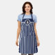 Crowned Cake Curved Text Navy Blue Stripes Bakery Apron