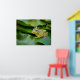 Digitally enhanced photograph of a frog wearing a crown, sitting on a lily pad surrounded by lily pads.
