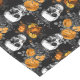 White skulls with dark grey crowns and orange roses are over a black background in this creepy Halloween design.