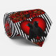 Tie made with crows and hearts in red, black and white with stripes.