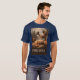 I give wanted to give this a 4 instead of a 5 because these Basic DARK T0shirts run unexpectedly SLIM or Narrow. Which is great if you do not have a potbelly, but I have a paunch. It isn't the shirt's fault that I've got a beer belly. The design and shirt itself is a quality cotton shirt. The color is more of a deep purple, but still a very pretty color. The Basic DARK T-shirts run a bit SLIMMER than the Basic Ts. The neck is a fraction narrower (or seems to be narrower) also. I'm a paunchy middle-aged woman and my neck is 12 inches (31cm) thick and the neckline fell about the same as in the photo of the man, and I had the desire to tug it a bit. So if you're a thick necked man or like loose shirts, be aware these are slimmer shirts. Once I get rid of my lockdown paunch it'll look great. The shirt washed well in cold water with no apparent bleeding. We don't have a dryer, so it hung dry. Did not shrink. Love the colors and the design. The design looks smaller on my shirt than it does on the model on-line. But still, it looks good on the shirt. The printing looks as it does on the model, just the size seems fractionally smaller. Washed garment in cold water, hung dry and design appeared unaffected.