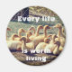 Round magnet with ducks for vegetarian and vegan with text Every life is worth living, cruelty free and animal rights.