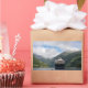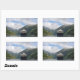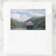 Sticker of a big cruise ship in the narrow Geirangerfjord with big mountains lining the fjord, seen from the village of Geiranger in Norway.