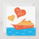 Cruise ship themed Save the Wedding Date Cards, 2-sided, perfect for couples tying the knot on a cruise ship or on the high seas for a boat or nautical wedding. Features orange ship cruiseliner and orange hearts. Easy to personalise on both sides.