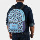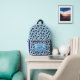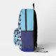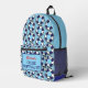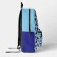 Fun cruise survival kit backpack patterned with blue and white ship lifebelts. All text is customisable so you can change the message and name