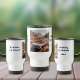 Travel mugs are available in your choice of white or stainless steel.