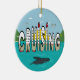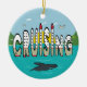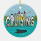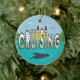Cruising design uses the word "cruising" to create a cruise ship sailing to exotic foreign destinations across the blue seas. Includes sun, anchor, steam funnels and cabin portholes to create a fun graphic for fans of cruising vacations.