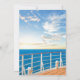 Sailing themed retirement party invitations featuring the deck of a cruise ship, the ocean, a beautiful sunset, and a retiring celebration template that is easy to personalise.
