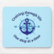 Nautical design in blue, that reads "Cruising through life one ship at a time".